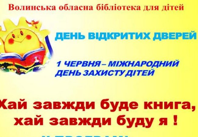 У Луцьку в обласній бібліотеці для дітей 1 червня відбудеться День відкритих дверей ««Хай завжди буде книга!Хай завжди буду я!».