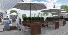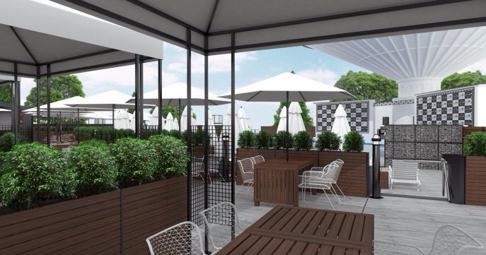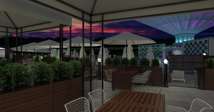 Також на території комплексу облаштують просторе кафе з парасольками та шатрами. Меню закладу буде різноманітним: конус-піца, суші, салати, бургери, смачні страви гриль та барбекю, а також повноцінне широке барне меню.
