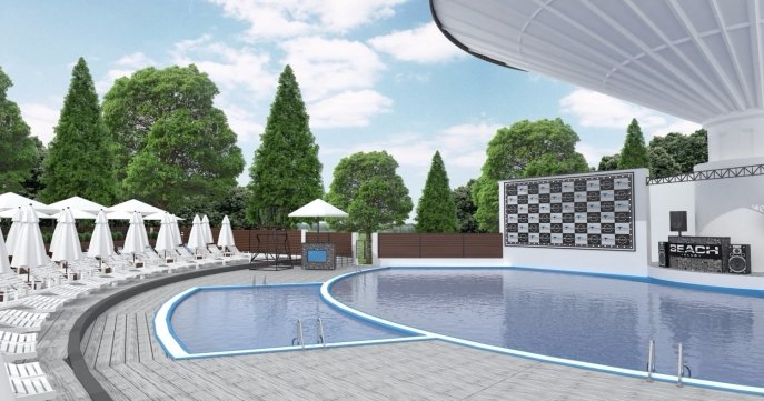 «Ми взяли за основу популярний світовий концепт «BEACH CLUB», створивши комфортну зону для засмагання та купання у 2 басейнах: глибокому та мілкому, в якому дуже зручно буде відпочивати дітям. Також багатофункціональність комплексу дозволяє використовувати його і за старим призначенням як концертний майданчик шляхом інсталяції спеціального сценічного перекриття. До того ж для зручності містян ми обладнали громадську вбиральню – чи не єдине в парку місце подібного типу з усіма зручностями. Є в ньому і туалетні кабіни для інвалідів, і місце для пеленання та годування немовлят. Плата, яку ми братимемо за користування туалетними кімнатами, покриватиме лише витрати за їхнє достойне утримання (прибирання, мийні та освіжаючі засоби, комунальні платежі тощо). Для відвідувачів зони купання облаштовані окремі туалети та душ, що входять у вартість абонементу», – додав Роман Хорзов.