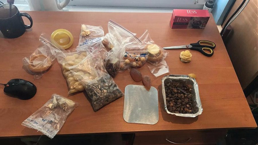 При транспортуванні у кур’єра виявили та вилучили 100 кг необробленого каменю – сирцю. Окрім того, під час обшуків за місцем його проживання та двох організаторів виявили 15 кг пресованих бурштинових плит, 11 кг готових виробів та заготовок, обладнання для обробки каменю.