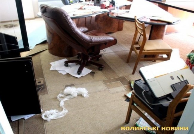 Всередині кабінету можна побачити розкидані документи та розрізаний сейф. Адвокат Ярослав Грищенко запевнював, що правоохоронцям готові були надати усі необхідні документи.