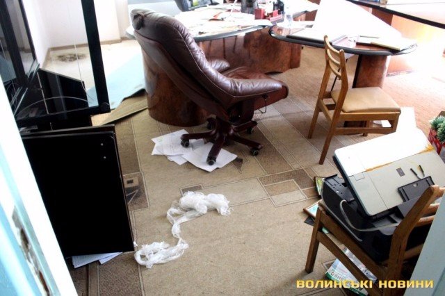 Власник приміщення на вулиці Шкільній, 74, колишній керівник підприємства «Стир-Агробуд» Степан Москвич розповів, що в офіс приїхала група з 15 осіб у балаклавах, перевернула догори дригом речі, в тому числі, понищила його почесні грамоти, не пояснивши, з якої причини.