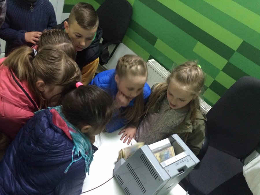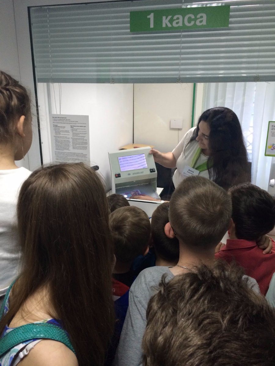 – Першим етапом у роботі програми ЮніорБанк, який доступний абсолютно для всіх, є екскурсія відділенням ПриватБанку. Тут діти віком від восьми років можуть побачити роботу банківської установи зсередини, поспілкуватися з працівниками, подивитись, як працює обладнання, та познайомитися з основними банківськими продуктами. Щоб потрапити на таку екскурсію, батькам лише потрібно записатись у відділенні банку й дочекатися, коли буде сформовано групу, – повідала Наталія Лукасюк.