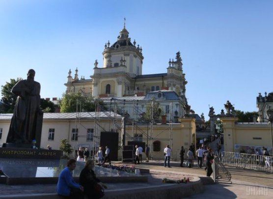 Прилеглі вулиці до собору Святого Юра перекрили. Людей просять залишати власні авто на околицях міста та діставатися до храму або громадським транспортом, або спеціальними автобусами.