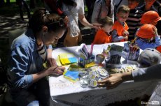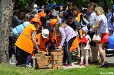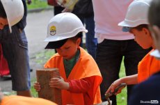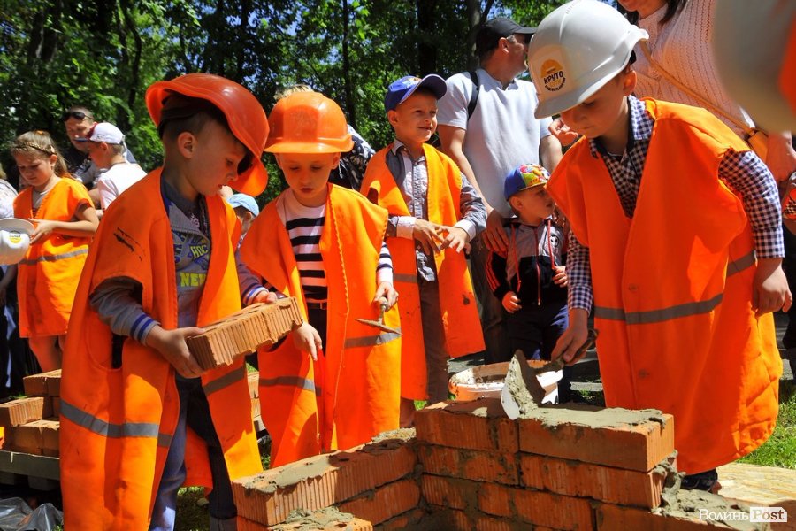 А особливий захват у малечі викликала можливість власноруч здійснити кладку стіни.