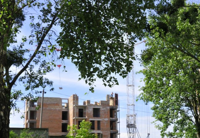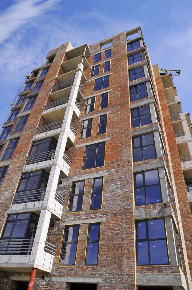 Третій будинок: будівельні роботи тривають на рівні 7-го поверху.