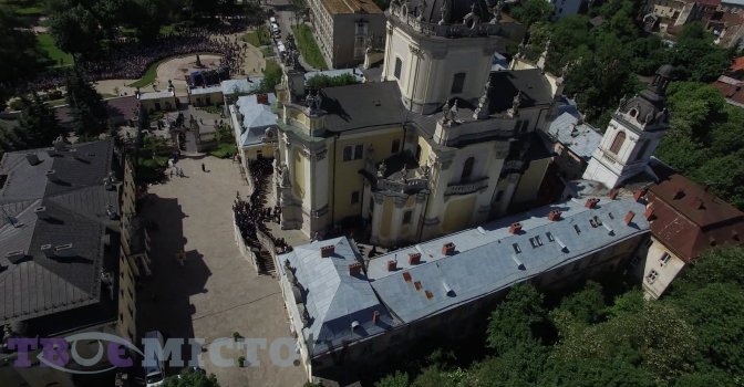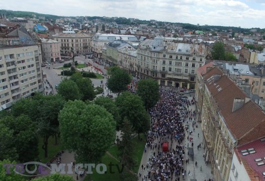 Тисячі львів’ян прощаються з Любомиром Гузарем. Кадри аерозйомки