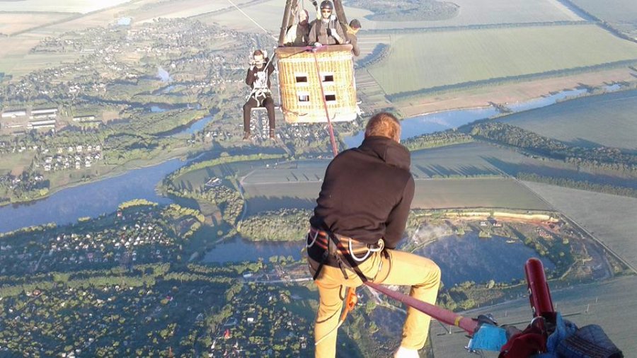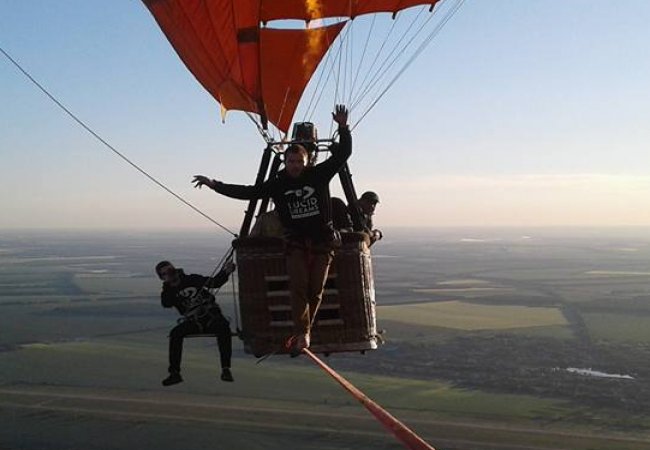 Рекорд на висоті 660 метрів: чоловік пройшов між повітряними кулями