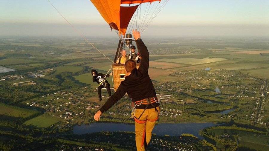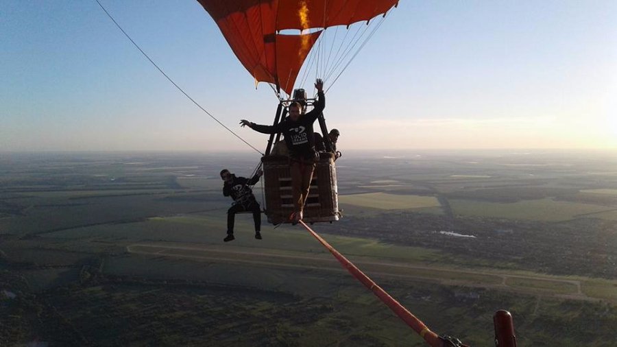 «Уперше в Україні на висоті 660 метрів український хай лайнер Станіслав Панюта пройшов по стропі між двома повітряними кулями, пілотованими професіоналами найвищого класу Сергієм Скальком та Юрієм Бейдиком», — написала вона.