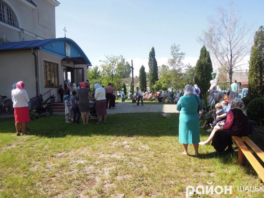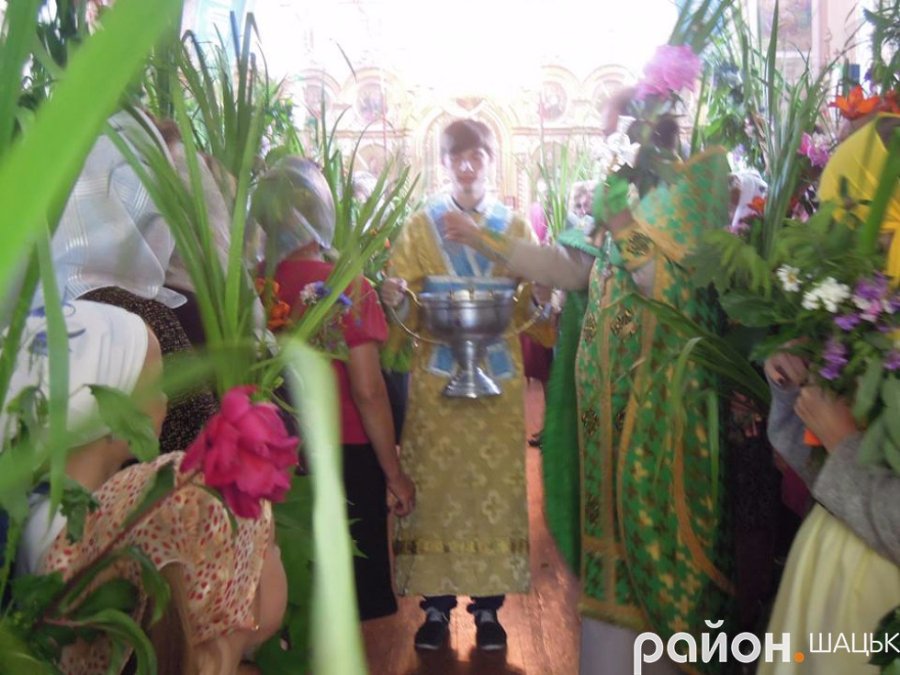 На Трійцю святкове богослужіння в храмі Різдва Пресвятої Богородиці смт Шацьк відвідала велика кількість вірян. За звичаєм, храм, як і будинки, був прикрашений зеленню: гілками клена, лепехою, квітами.
