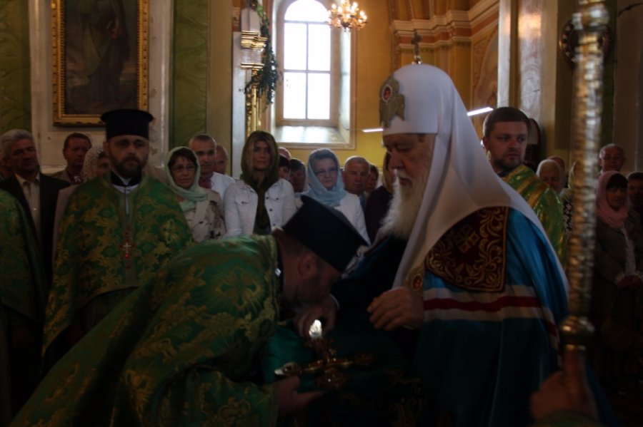 Після традиційного хресного ходу навколо собору владика Михаїл, представники місцевої влади висловили Патріархові подяку за візит, побажавши здоров’я та сили служити й молитися за Україну.