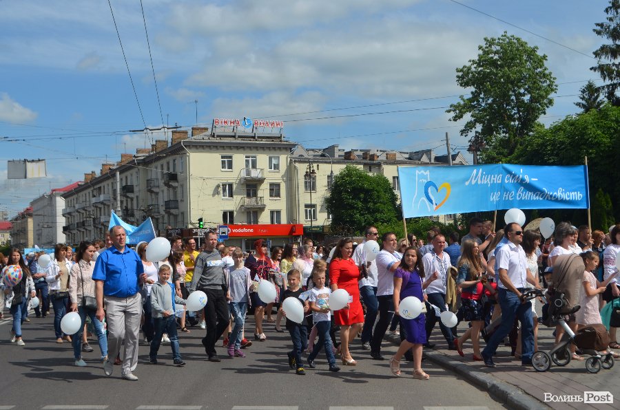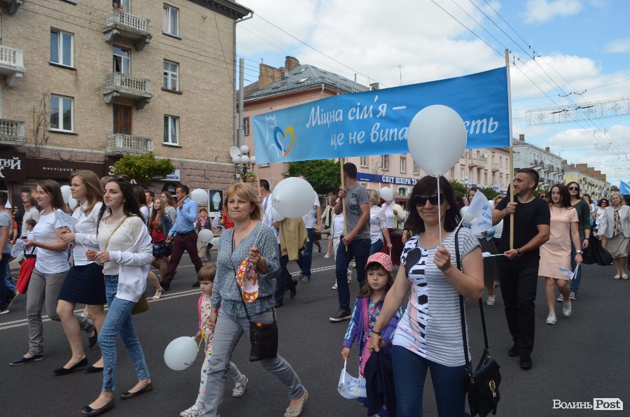 Стартувала хода від Київського майдану. Лучани вийшли на вулицю разом із своїми сім’ями та дітьми. У супроводі оркестру вони пройшлись проспектом Волі із закликами «Міцна сім’я - міцна держава», «Є родина - є країна», «Тато, мама, я - запланована Богом сім’я».