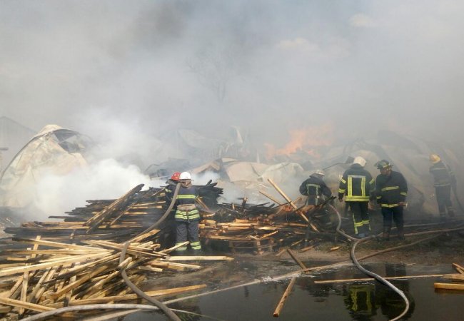 Повідомлення про пожежу надійшло в 13:40. Вогонь охопив територію колишньої оптової бази в окремо розташованих двох складських приміщеннях на площі близько 1,5 тисячі кв. м.