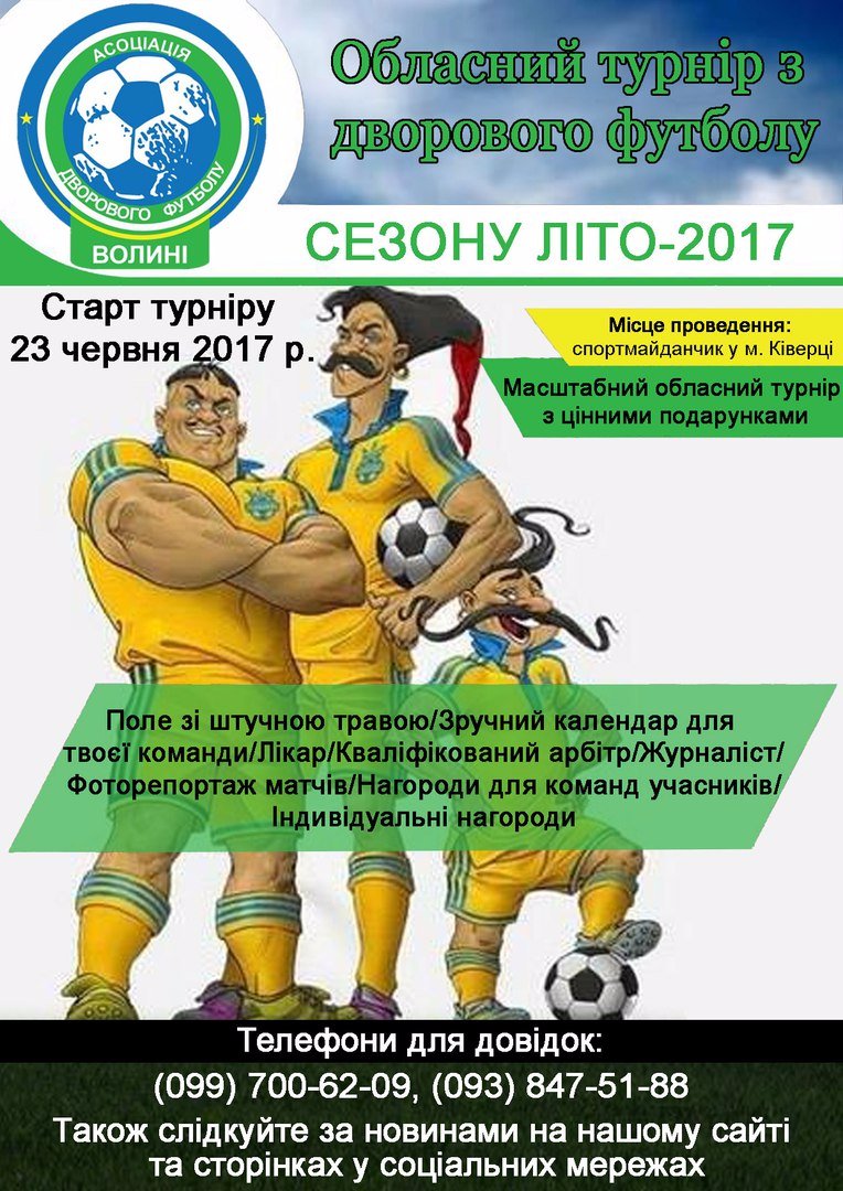 Із 1 червня стартувала заявкова кампанія на черговий чемпіонат під егідою Асоціації дворового футболу Волині. Турнір уже звично проходитиме на спортивному майданчику у Ківерцях.