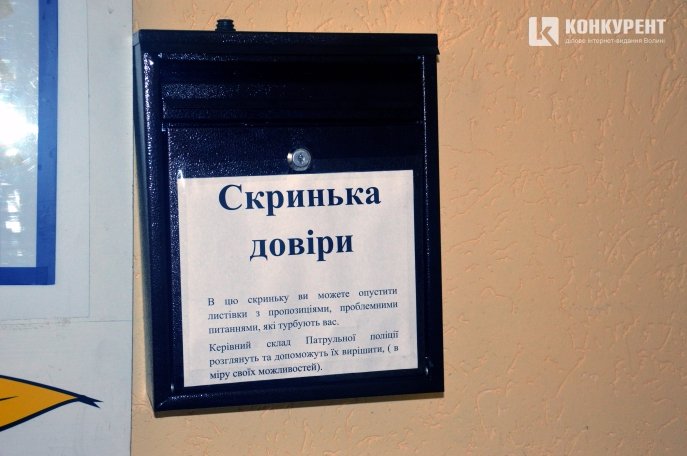 Оглянувши територію, заходимо в середину управління. Біля входу висить «Скринька довіри», куди громадяни можуть на щось поскаржитися анонімно.