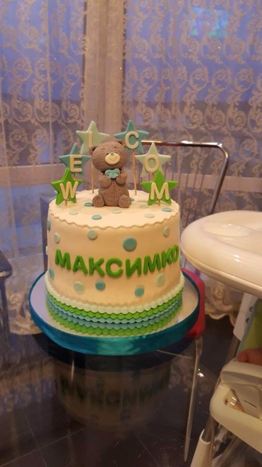 «От і почалось нове життя. Майже все сімейство зібране, не вистачає ще сестрички. Але вона скоро приїде з дитячого табору і буде нове фото. Максимка сімейство зустріло тортиком, спеціально зробленим для нього - із маленьким ведмедиком. З часом ви зрозумієте, чому саме ведмедик», – розповів новоспечений батько хлопчика.