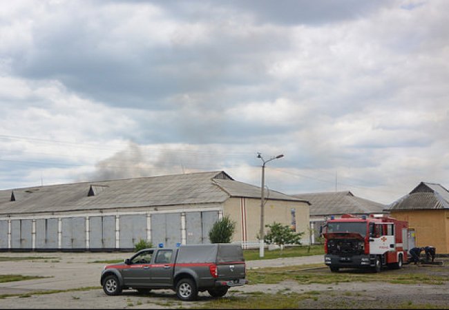 У Рівному вогнеборці локалізували пожежу на базі військових складів. Вогонь спалахнув у старих складських приміщеннях.