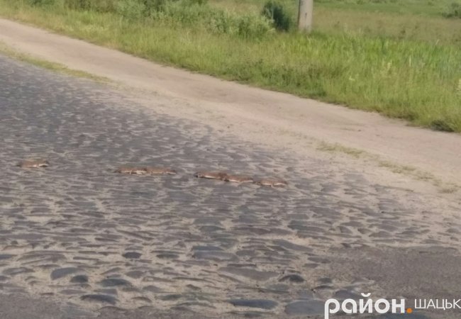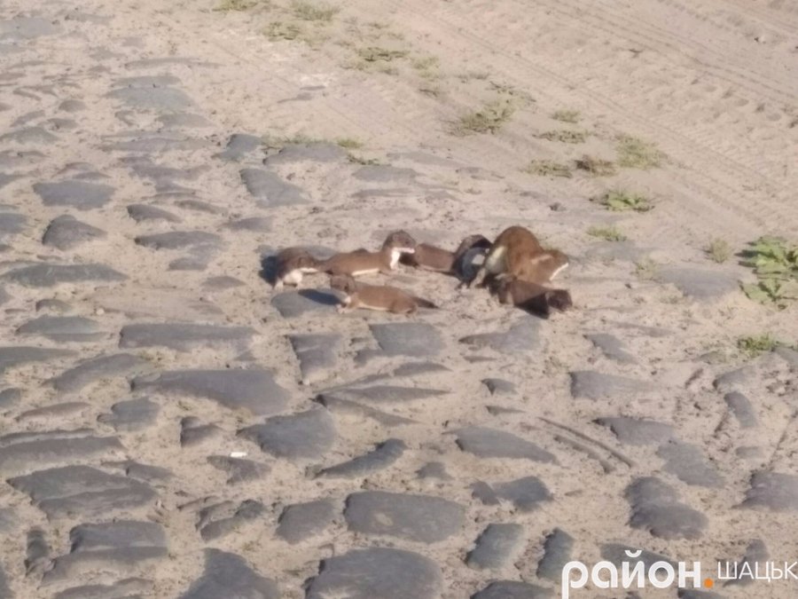 В інтернеті опублікували фото ласки з дитинчатами, які переходили дорогу в селищі Шацьк.