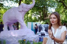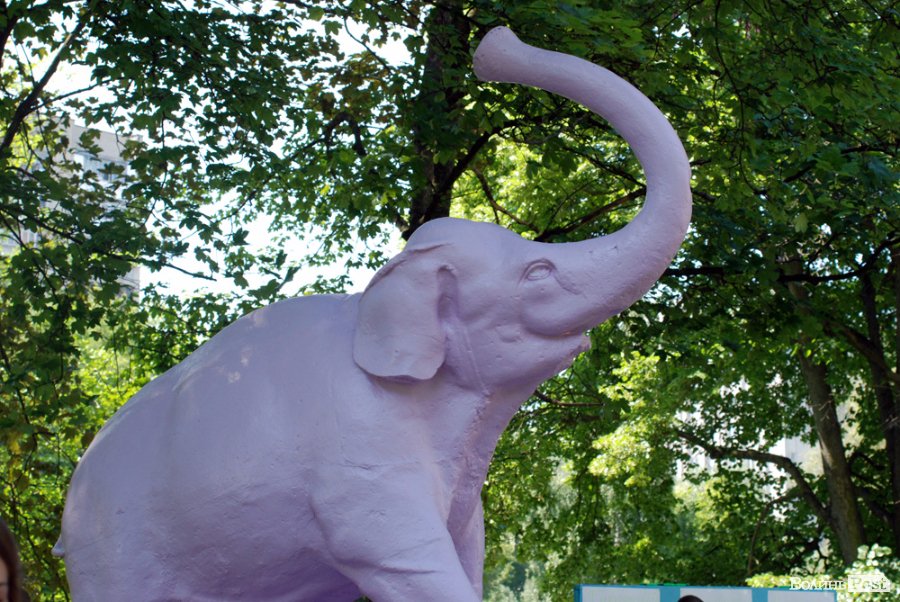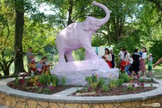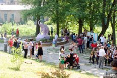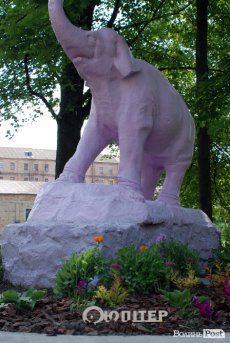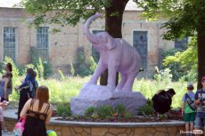 Десятки людей прийшли подивитися на те, як змінився "слоник". Його перефарбували, а колишній фонтан засипали землею та спеціальною сумішшю, в яку висадили квіти.