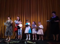 Вихованці з садочку №17 в Луцьку подякували акторам та всьому колективу за сезон. Діти розповідали віршики, а також обіцяли, що коли виростуть стануть відомими акторами.