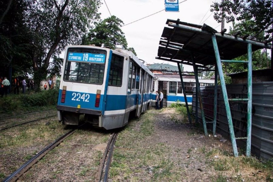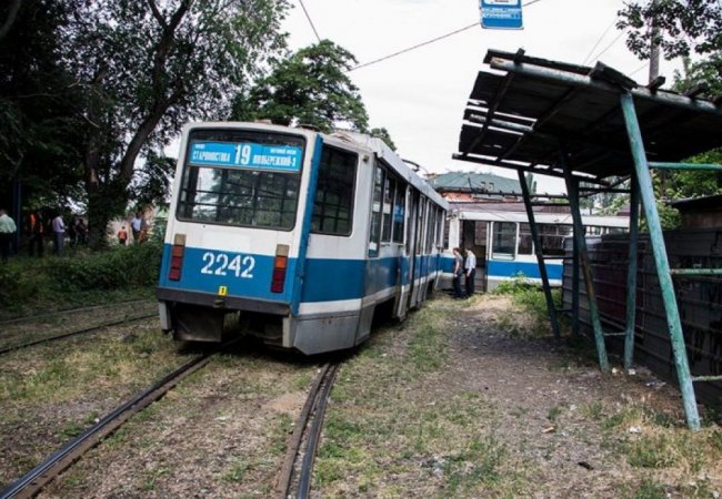 У Дніпрі трамвай «врізався» в потяг, залізничника розчавило між вагонами