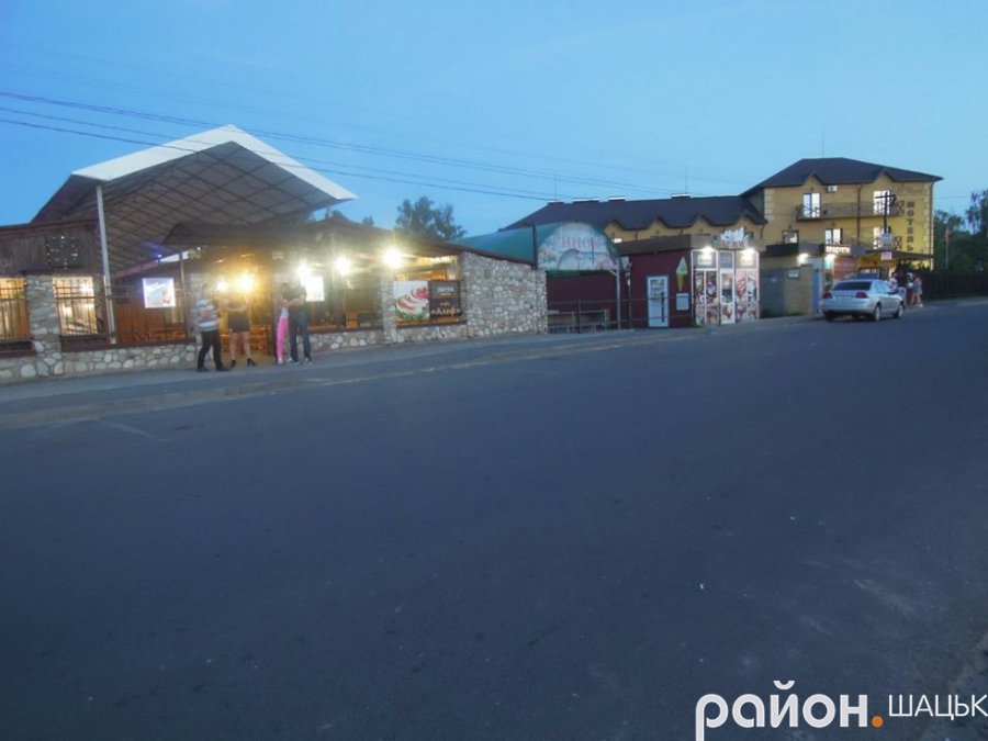Поки ще пустує ринок, проте працюють бари, кафе, магазини і вже ходять берегом озера продавці солодких пончиків.