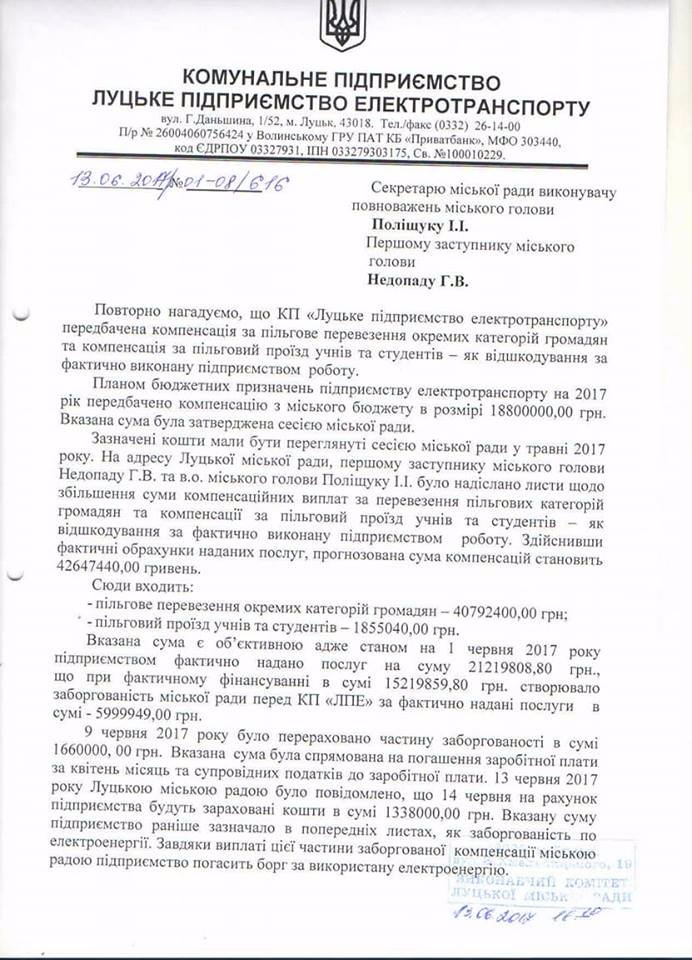 Нагадаємо, 12 червня виконувач обов'язків міського голови Ігор Поліщук заявив, що кошти на ЛПЕ уже перераховані. Натомість Ігор Грицюк каже, що коштів ще немає.