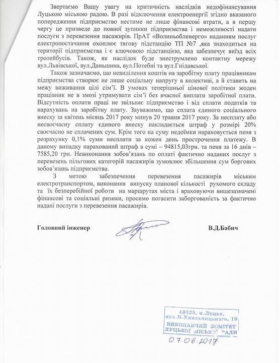 Таким чином, якщо підприємство не оплатить послуги із надання електроенергії, усе депо може зупинитися.