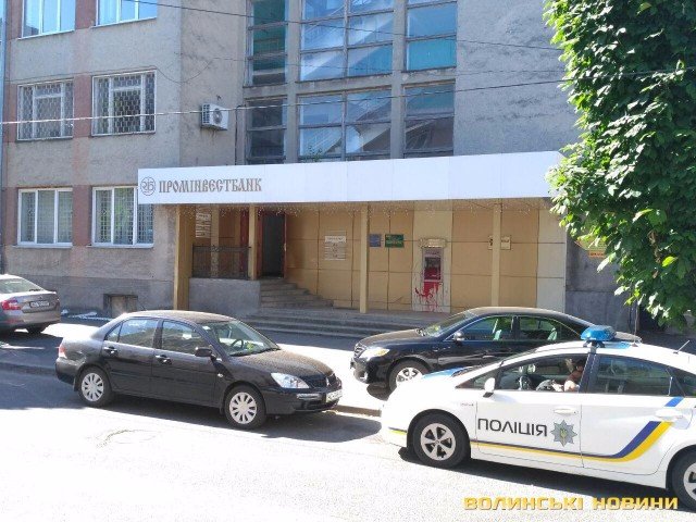 Банкомат «Промінвестбанку», що знаходиться на вулиці Степана Бандери у Луцьку, облили червоною фарбою.