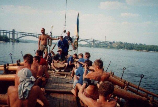 На фото ми приплили у Запоріжжя і оскільки вітру немає то на веслах підпливаємо до острова Хортиця, я за барабаном керую гребцями.
