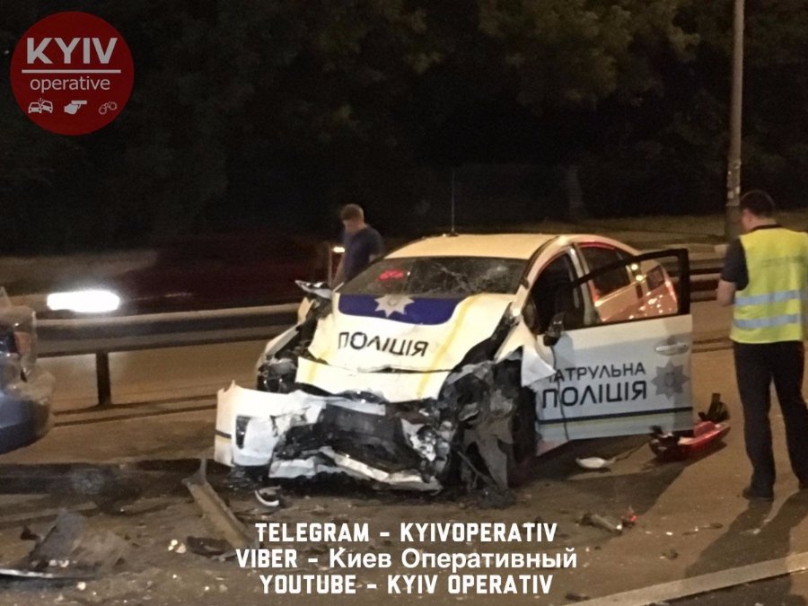 Нічна погоня в Києві: Mitsubishi та поліцейський Prius зіткнулися лоб у лоб