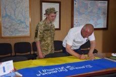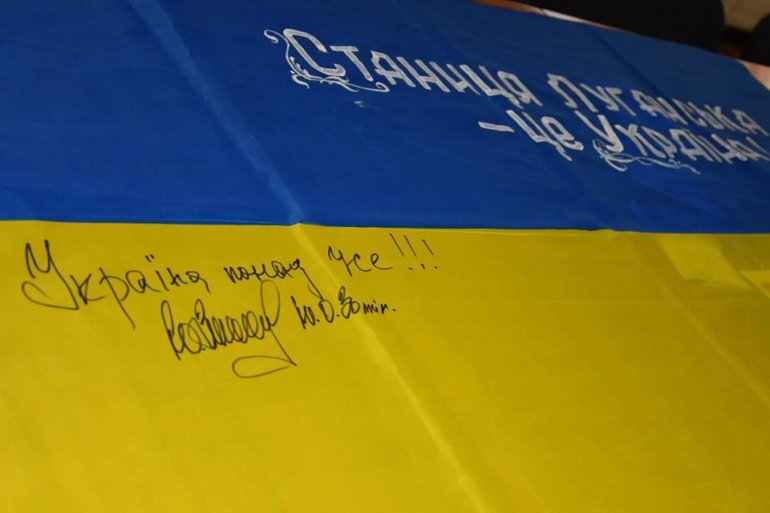 Голова районної державної адміністрації Станиці Луганської Юрій Золкін вручив керівнику оркестру Ярославу Королю український прапор з надписом «Станиця Луганська – це Україна», а згодом написав на ньому щирі побажання.