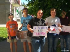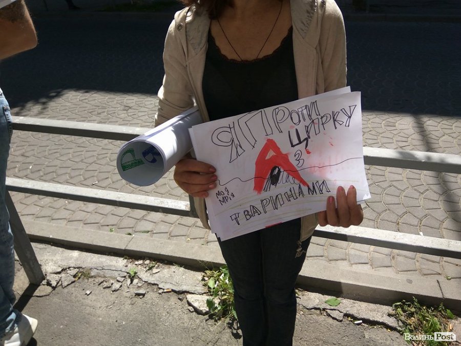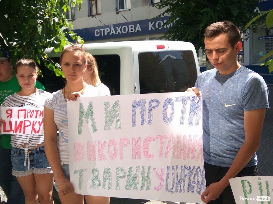 Біля Луцького міськрайонного суду зібралися активісти, які мітингують проти використання тварин у цирках.