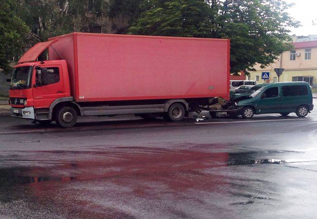 Так, на дорозі не розминулися Citroën berlingo та Mercedes, зокрема «француз» «пірнув» під вантажівку.