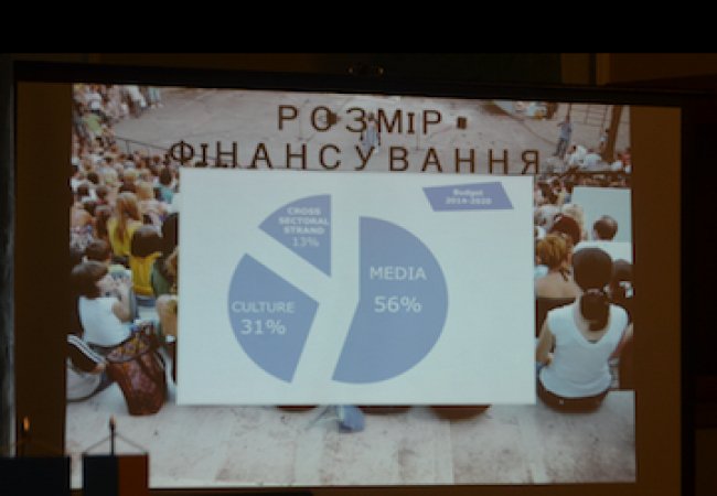 «Програма «Креативна Європа» це програма, яка розрахована на сім років. Розпочалась у 2014-му і триватиме до 2020-го року. Програма охоплює 39 країн, і Україна приєдналась до неї 1 січня 2016-го року. Також програма розрахована на три напрямки: культурний, креативний та сфера аудіовізуальних індустрій. Загалом бюджет програми - півтора мільярди євро. Але ці гроші розділяють на сім років, і, також, на 18 каналів фінансування.