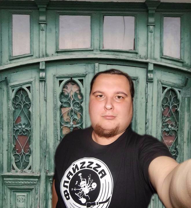 Чоловік з бородою себе в фотошопі біля дверей вставив :)