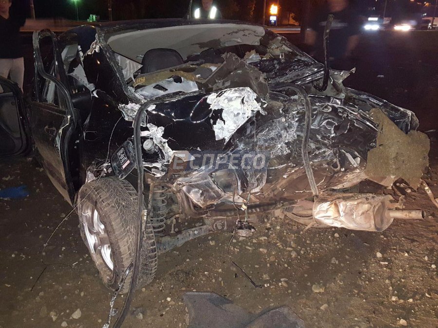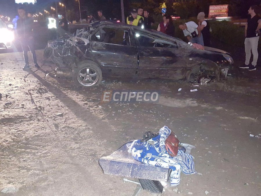 Перед цим авто підкинуло і воно врізалося у стовп на висоті 2 метри. Від удару автівку перекинуло на дах і вона продовжила рух, перекидаючись кілька разів. Також від уламків аварійного авто кілька машин отримали незначні пошкодження.