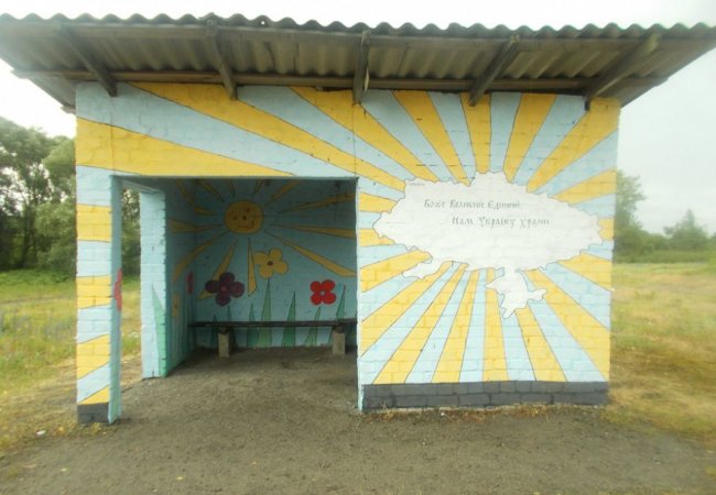 «Учні 8 класу разом з вчителем образотворчого мистецтва Василем Карпуком вклали свою працю і душу в автобусну зупинку на території нашого села, розфарбувавши її в патріотичні кольори. Справа залишилась за малим, потрібна лише дорога і маршрутні рейси, чого всі з нетерпінням чекають. А також надіємось, що ніяких зайвих побажань і автографів там не буде. Милуйтесь і, будь ласка, цінуйте працю наших дітей!» – йдеться у дописі на сторінці Facebook школи.