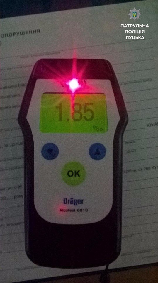 Тест показав 1, 85 проміле алкоголю в крові чоловіка, тож, на нього оформили протокол за керування в стані сп’яніння, а також інші матеріали за порушення.