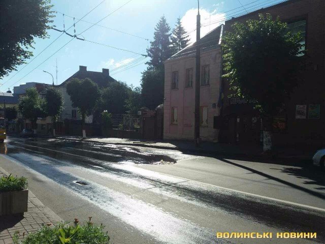 Посеред центральної вулиці Луцька з-під землі б’є фонтан
