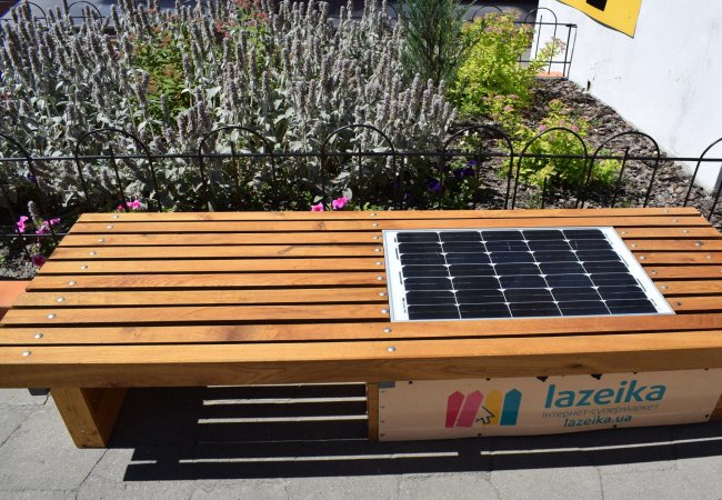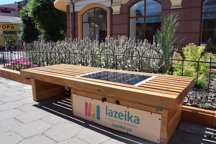 На вулиці Лесі Українки при вході в ЦНАП встановили лавку із сонячною батареєю.