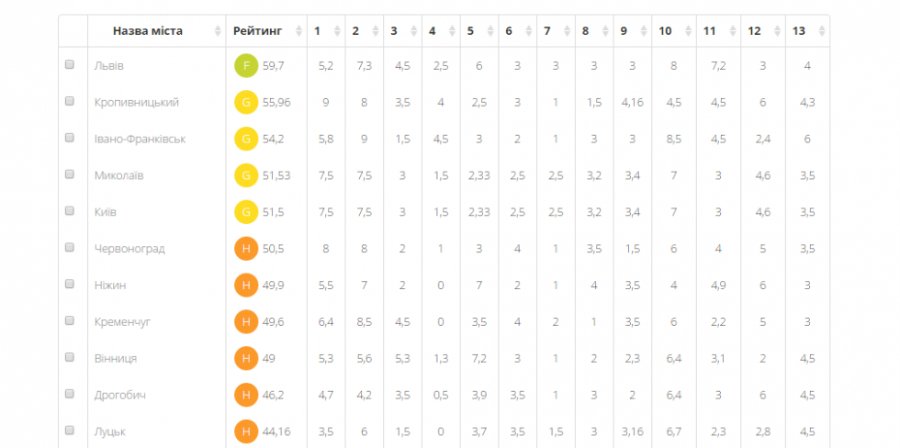 Луцьк отримав такі результати:
