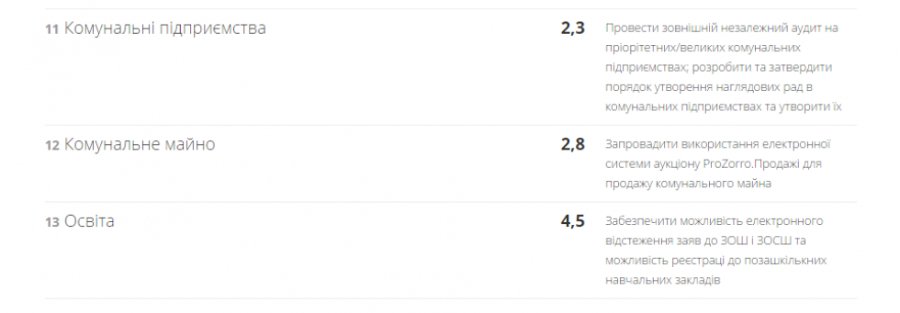 Комунальні підприємства (максимум – 10 балів);