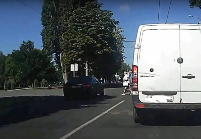 "Ушльопок на київських номерах на переході біля центрального парку. Жіночці повезло", - коментують відео в Facebook в групі "АвтоАндони Луцька".