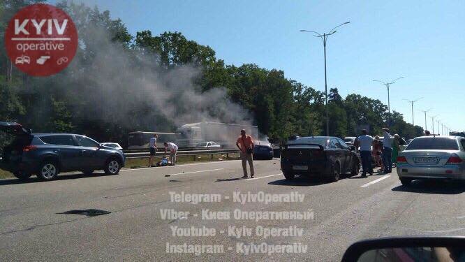 «Серйозна ДТП в Києві з постраждалими і загорянням авто на Бориспільській трасі! Постраждала маленька дівчинка і жінка», — сказано в повідомленні.