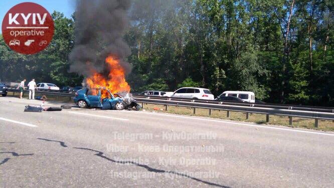 На Бориспільській трасі загорівся автомобіль в результаті ДТП.