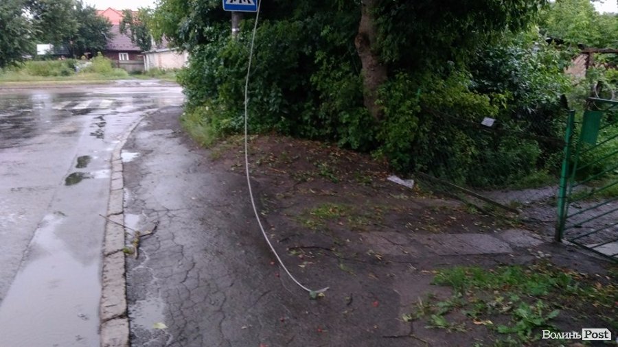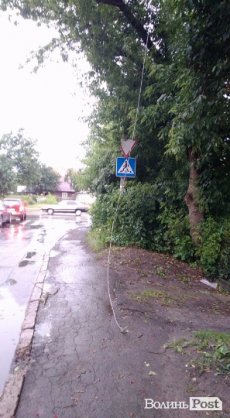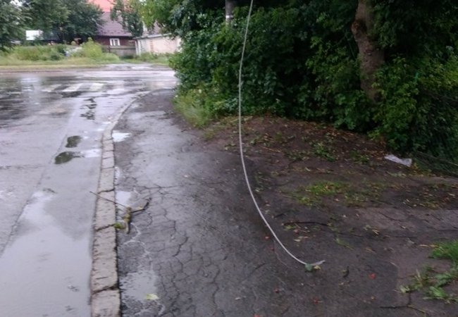 Через бурю в Луцьку посеред тротуару розірваний кабель
