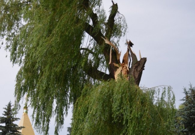 Найбільше шкоди наробила негода на Пагорбі Слави. Сильний вітер поламав десятилітні верби та на кілька метрів повідносив вінки.