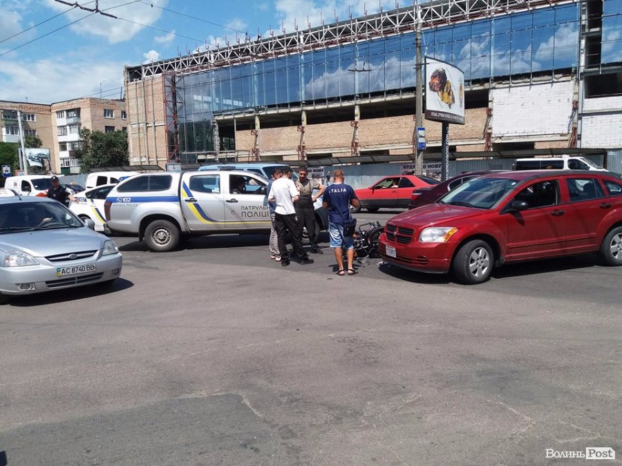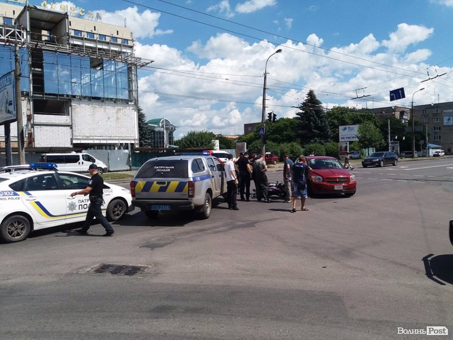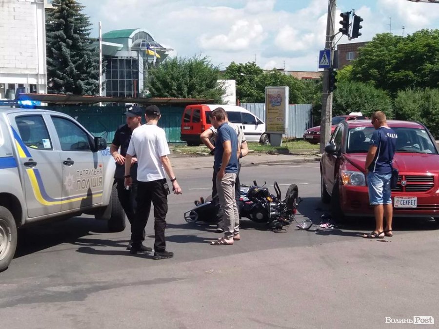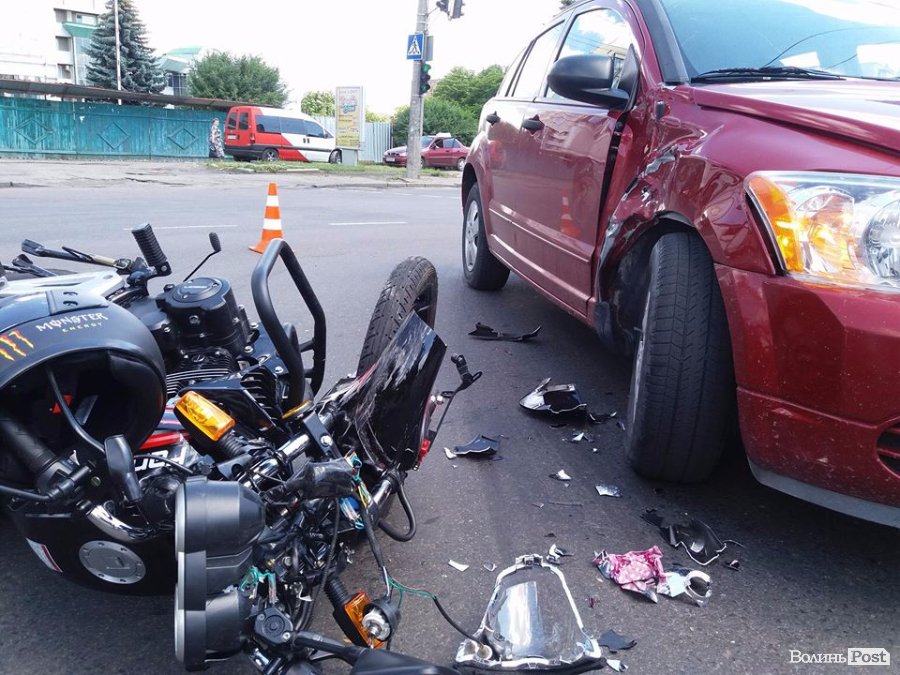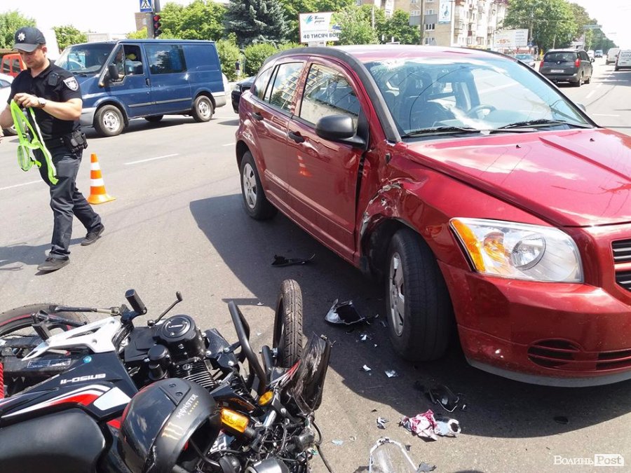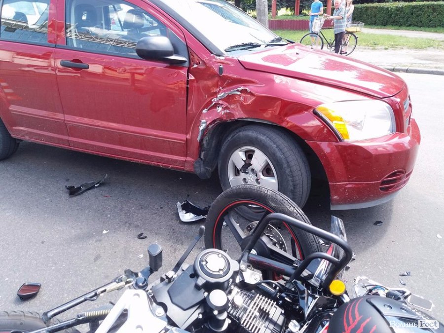 У Луцьку сталася аварія, під час якої мотоцикл врізався у Dodge.