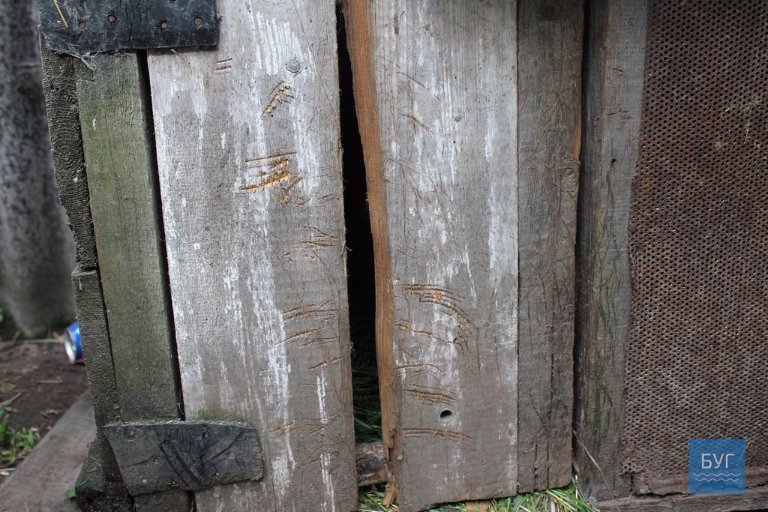 Ільчук показує сліди від пазурів і зубів на кролячих клітках, відірвані дошки, мішки, в які зібрали мертвих кролів і качок.